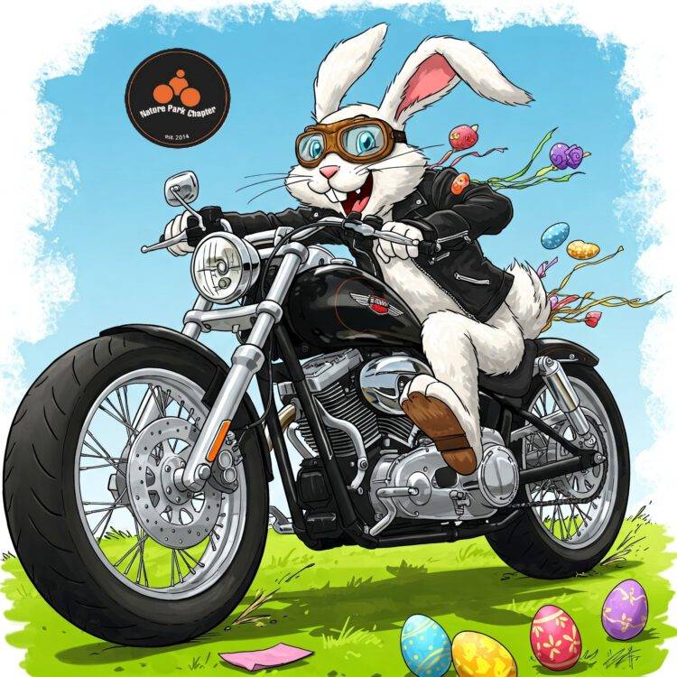 Die Eier sind versteckt, die Bikes geputzt – das Nature Park Chapter wünscht euch rockige Ostertage und eine knitterfreie Fahrt in den Frühling! 🤘🏍️🐰 (www.natureparkchapter.de)
