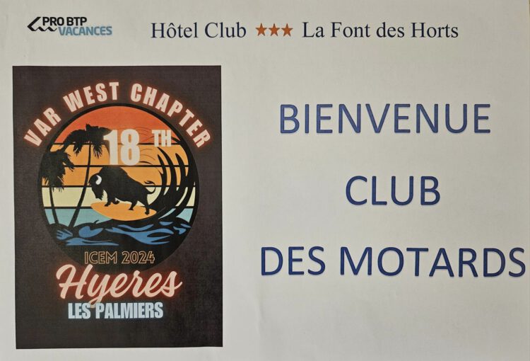 Wir sind gerade zuhause, müde aber wohlbehalten angekommen. Ende des 18. ICEM und das erste ohne Motorrad. Es war trotzdem super schön! Herzlichen Dank an das Var West Toulon Chapter für die großartige Organisation. Glückwünsche an alle Mitglieder! Grüße senden wir allen anwesenden Chapters, und wir hoffen, dass alle sicher nach Hause kommen. Die zuhause gebliebenen hoffen wir bald zu sehen!