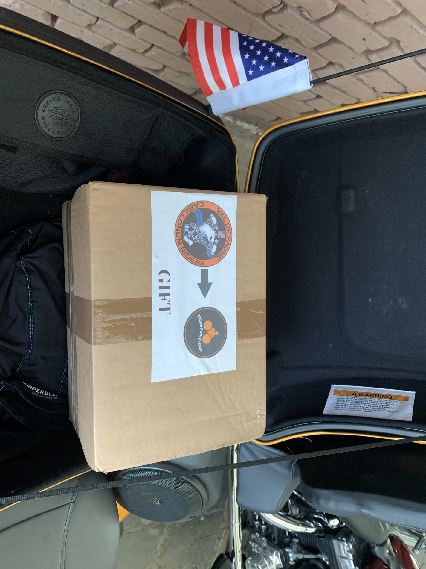 Uns hat ein Paket erreicht auf dem “GIFT” aufgedruckt ist.